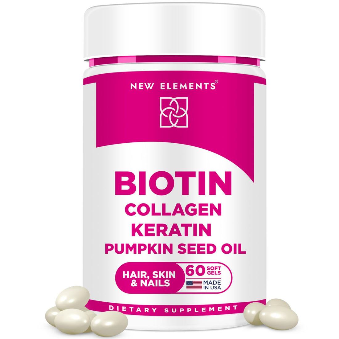 Biotin 10,000mcg with Collagen, Keratin & Pumpkin Seed Oil – Hair, Skin & Nails Supplement for Women & Men | Hair Growth, Strength & Shine | 60 Softgels