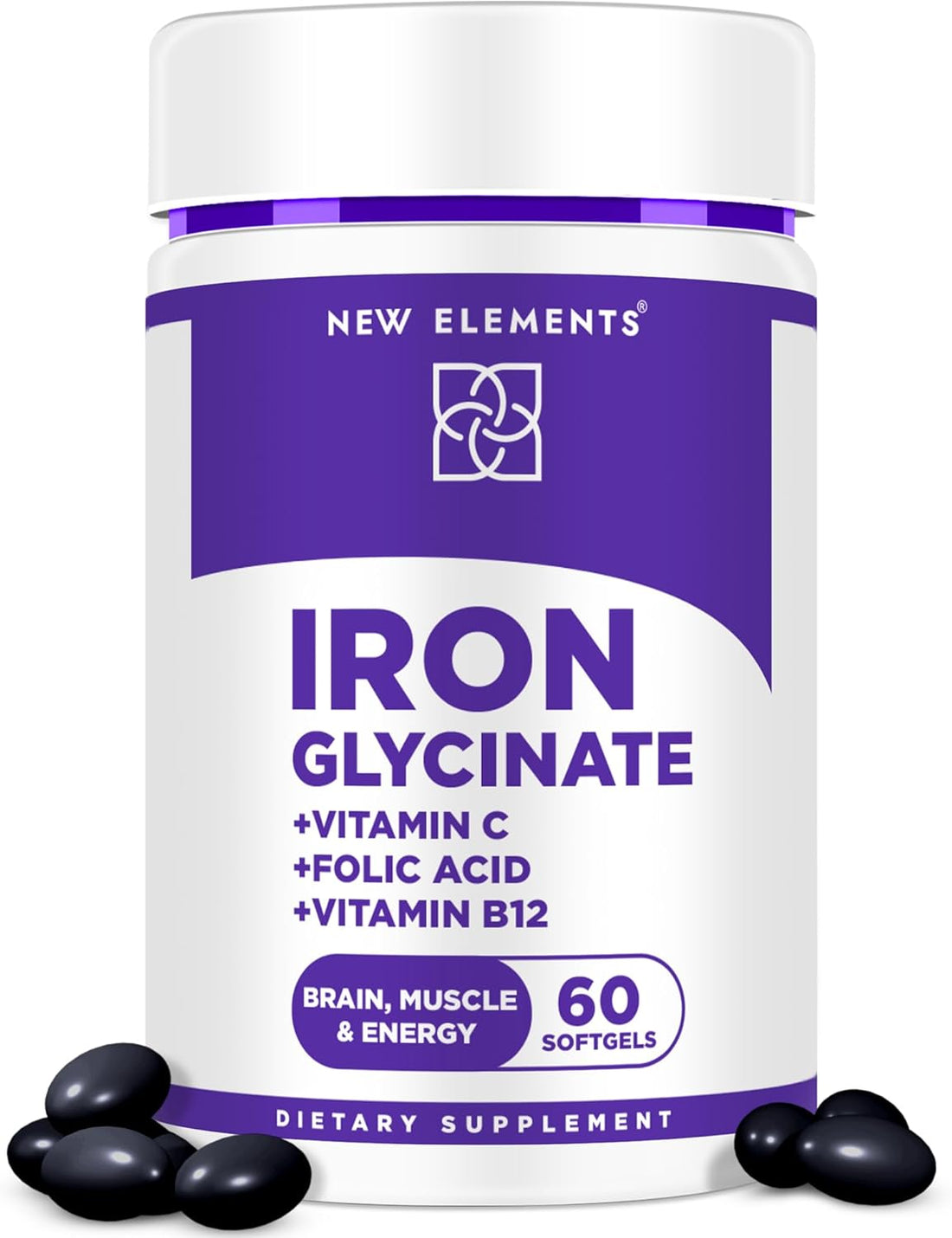 Iron Glycinate 50mg with Vitamin C, Folic Acid & B12 – Gentle Iron Supplement for Anemia Relief, Energy & Immune Support – 60 Softgels