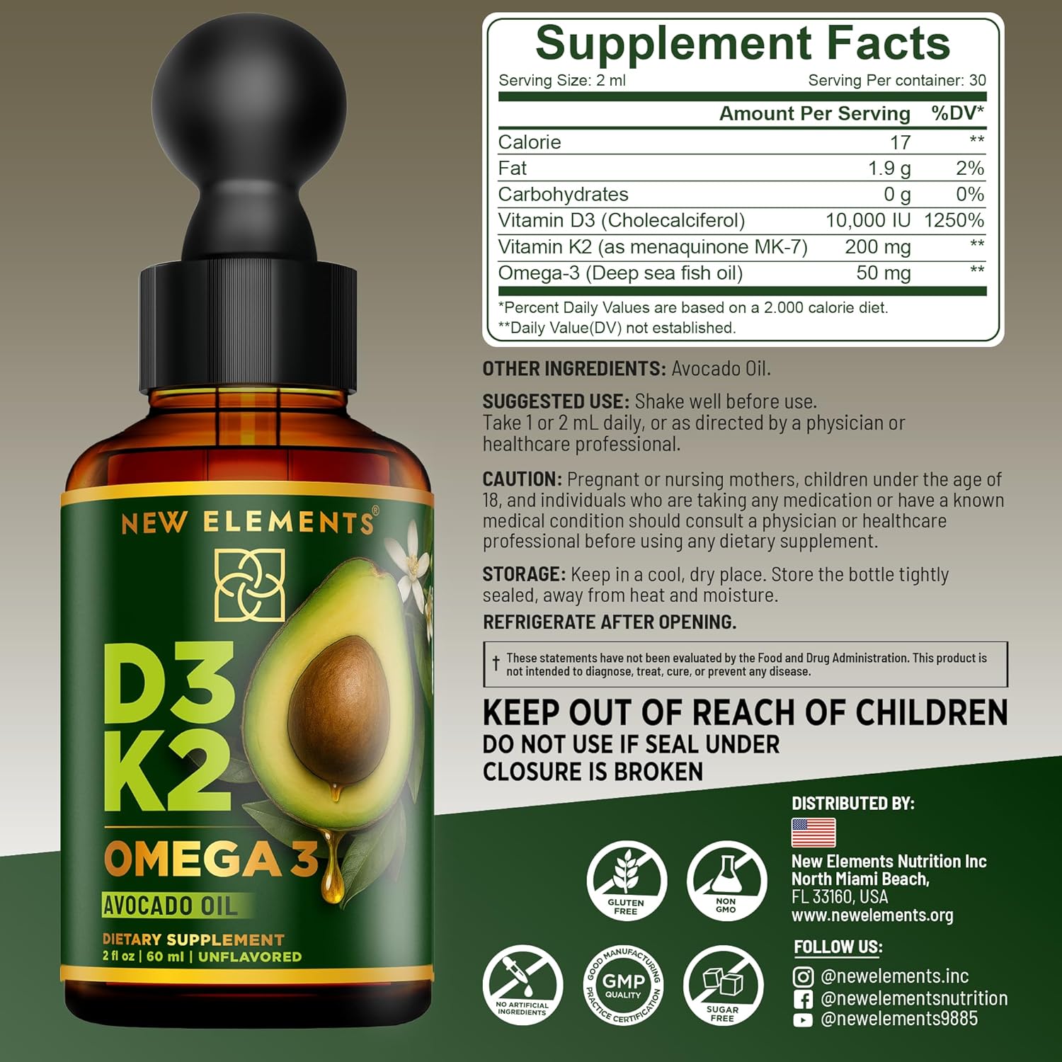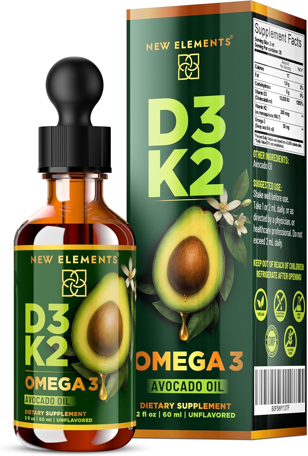 Liquid Vitamin D3 + K2 Drops 10,000 IU with Omega-3 & Avocado Oil β Bone, Immune & Heart Support β High Absorption β 2 fl oz (60 ml)
