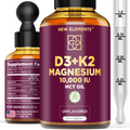 Vitamin D3 + K2 with Magnesium – High Potency 10,000 IU Drops | MK-7 K2 200 mcg, Magnesium Glycinate, MCT Oil (Unflavored, 2 fl oz)