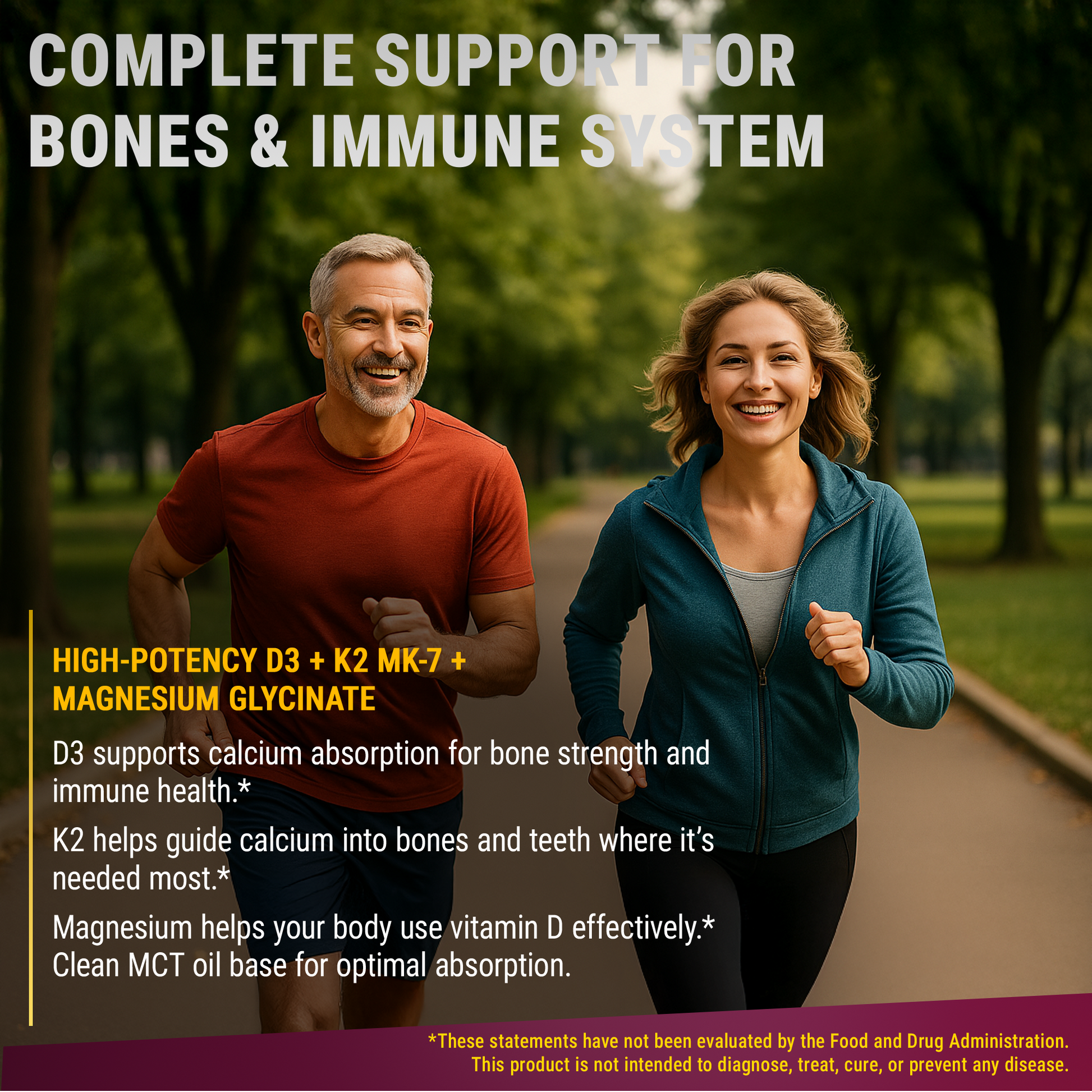 🦴 Strong Bones & Teeth – Vitamin D3 enhances calcium absorption, while K2 directs it to bones and teeth.*
