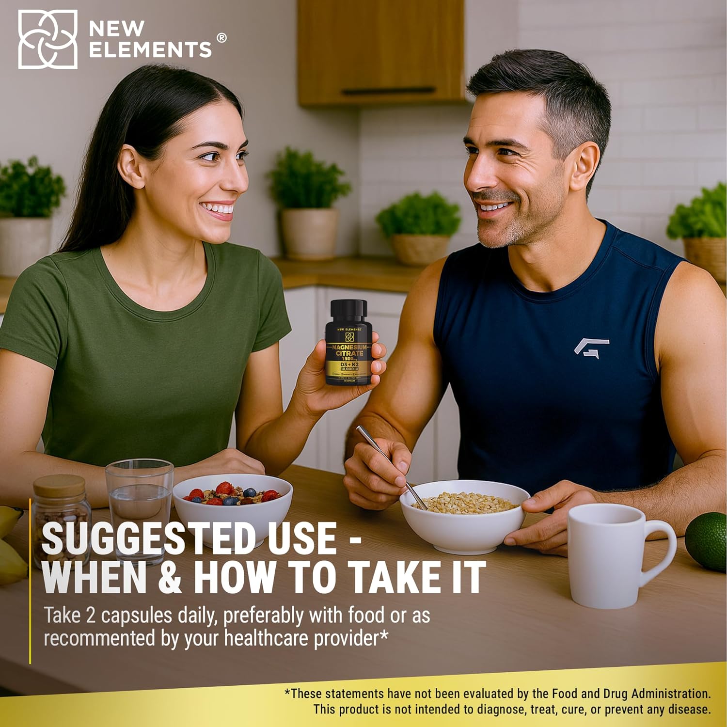 Magnesium Citrate 1500mg with Vitamin D3 10,000 IU & K2 MK-7 β Energy, Immunity & Bone Support β 60 Vegan Capsules