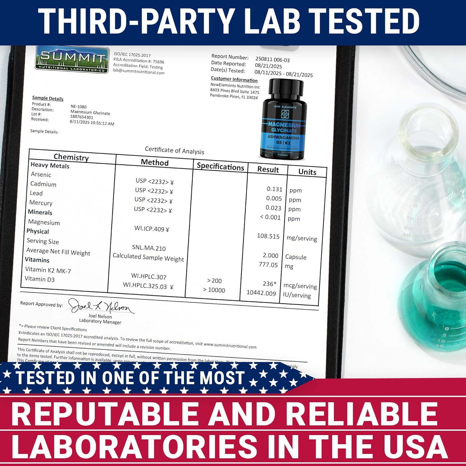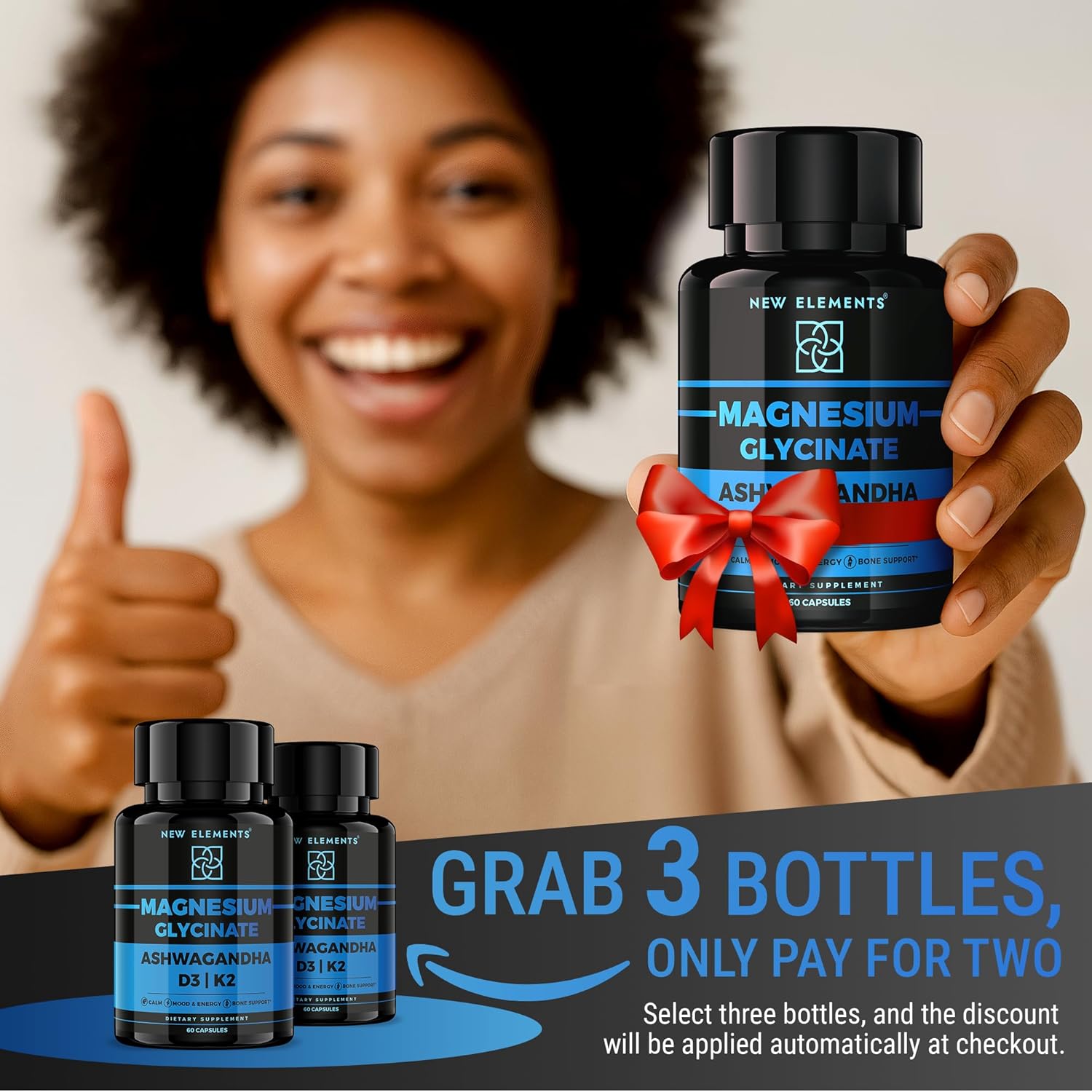 Magnesium Glycinate 1500mg with Ashwagandha 300mg + Vitamin D3 10,000 IU & K2 MK-7 β Stress Relief, Calm Mood & Bone Support β 60 Vegan Capsules