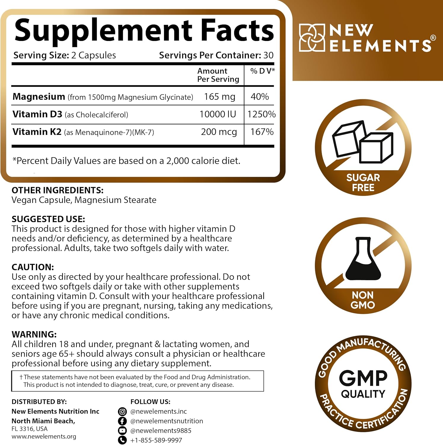 Magnesium Glycinate 1500mg with Vitamin D3 10,000 IU & K2 MK-7 200mcg β Bone, Muscle, Immune & Mood Support β 60 Vegan Capsules