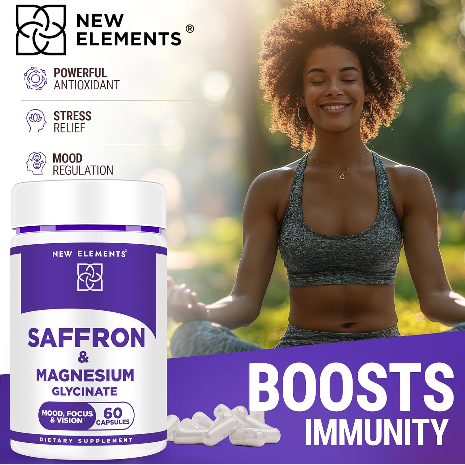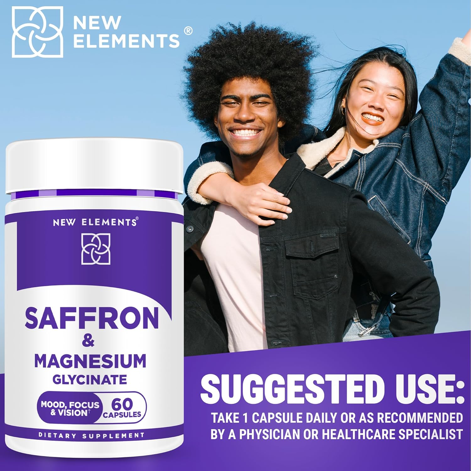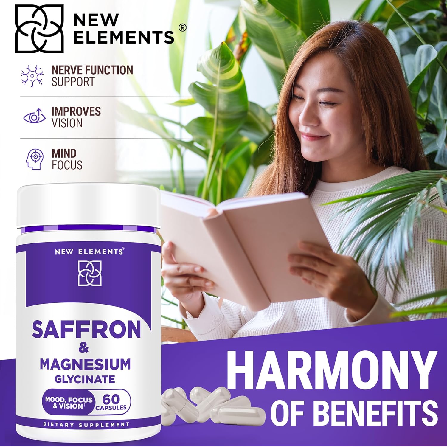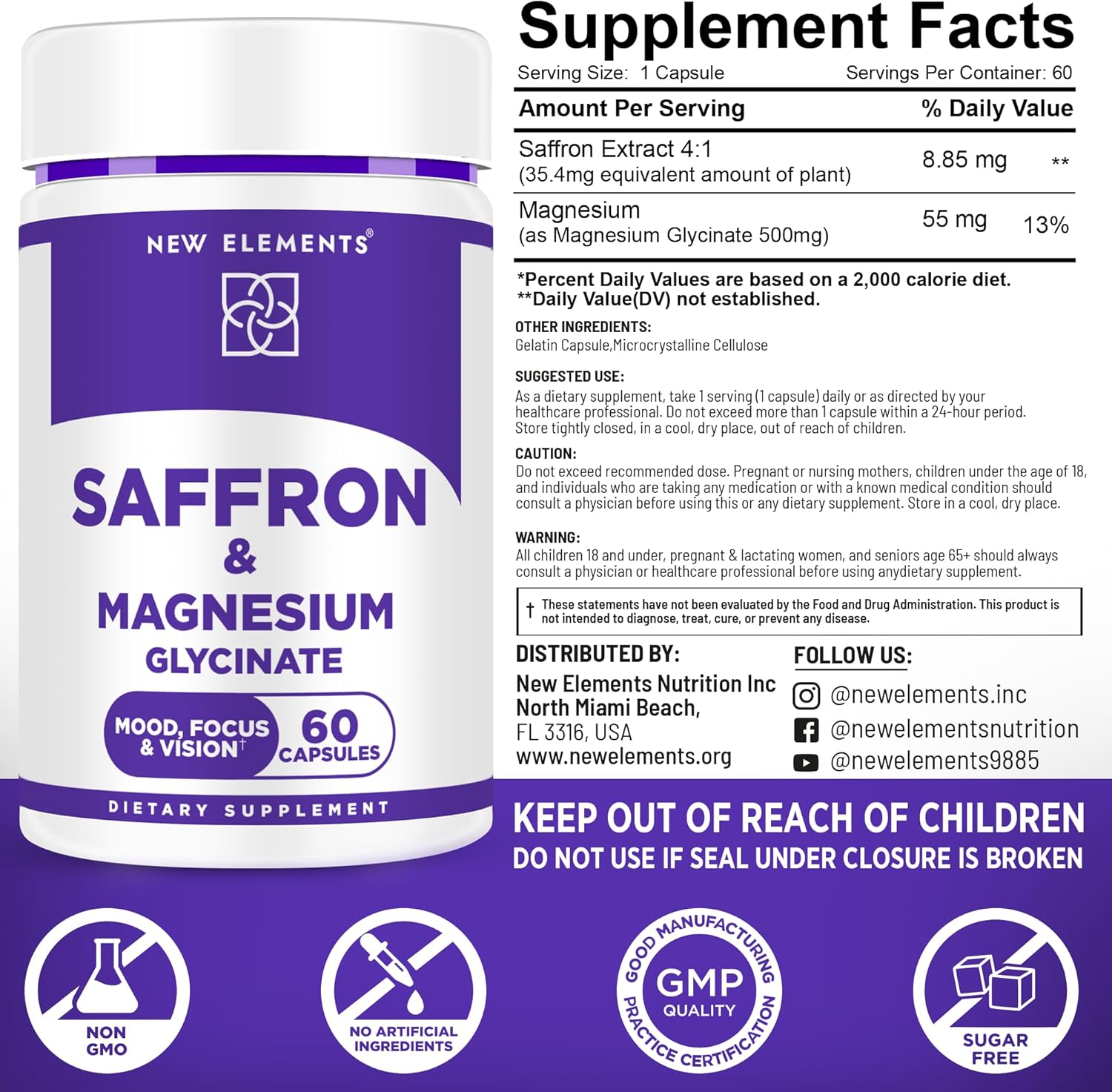 Saffron Extract 8.85mg with Magnesium Glycinate 500mg β Mood, Stress & Wellness Support β Vegan, Non-GMO, 60 Capsules