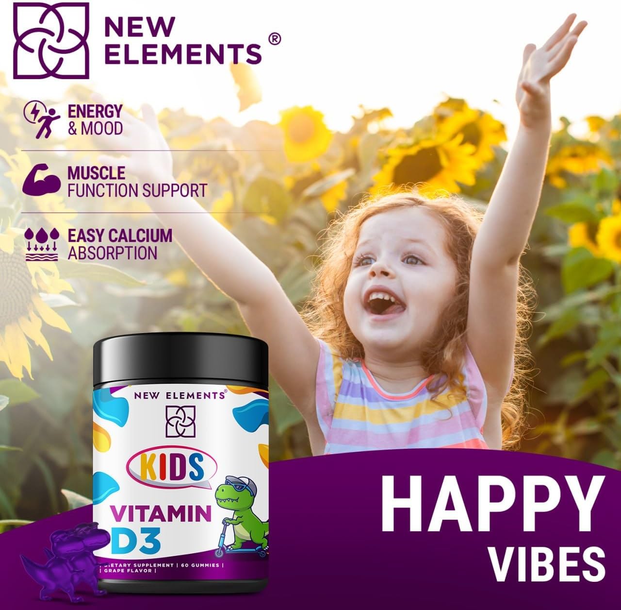 Kids Vitamin D3 Gummies 2000 IU β Sugar-Free | Bone, Mood & Immune Support | Vegan, Non-GMO, Grape Flavor (60 Gummies)